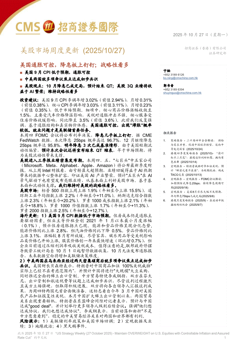 招商证券(香港)-美股市场周度更新:美国通胀可控,降息板上钉钉;战略性看多-251027
