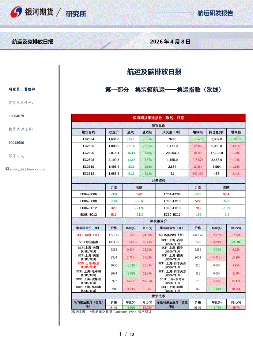 银河期货-集运指数(欧线)专题报告:伊朗局势及霍尔木兹海峡通行动态跟踪(五)-260424