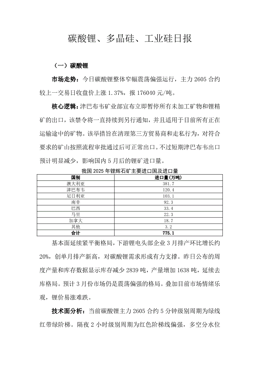 天富期货-碳酸锂、多晶硅、工业硅日报-260203
