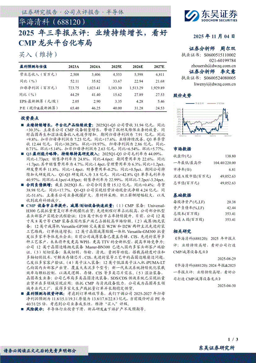 华海清科:东吴证券-华海清科-688120-2025年三季报点评:业绩持续增长,看好CMP龙头平台化布局-251104