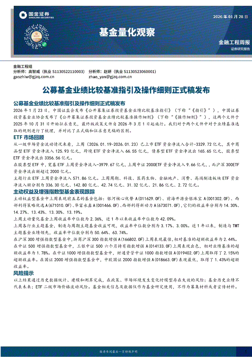 国金证券-基金量化观察:公募基金业绩比较基准指引及操作细则正式稿发布-260128