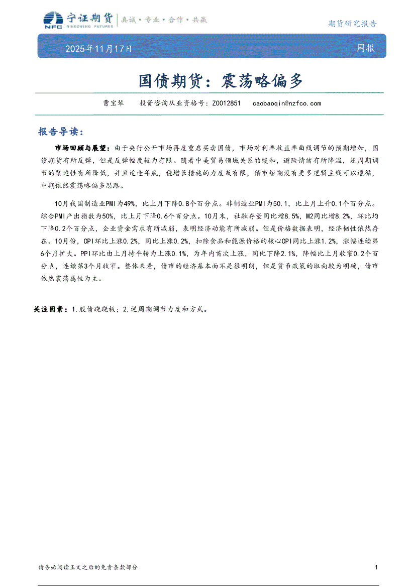 宁证期货-国债周度报告:逆周期调节或增加,震荡略偏多-251110
