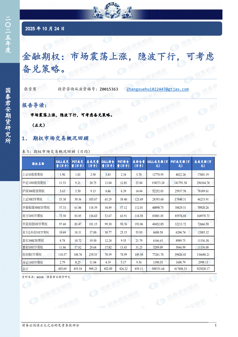 国泰君安期货-金融期权:市场震荡上涨,隐波下行,可考虑备兑策略-251024