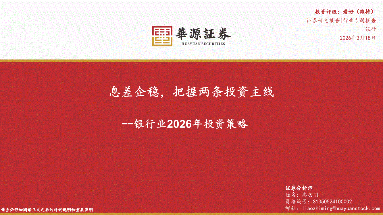 银行业:华源证券-银行业2026年投资策略:息差企稳,把握两条投资主线-260318