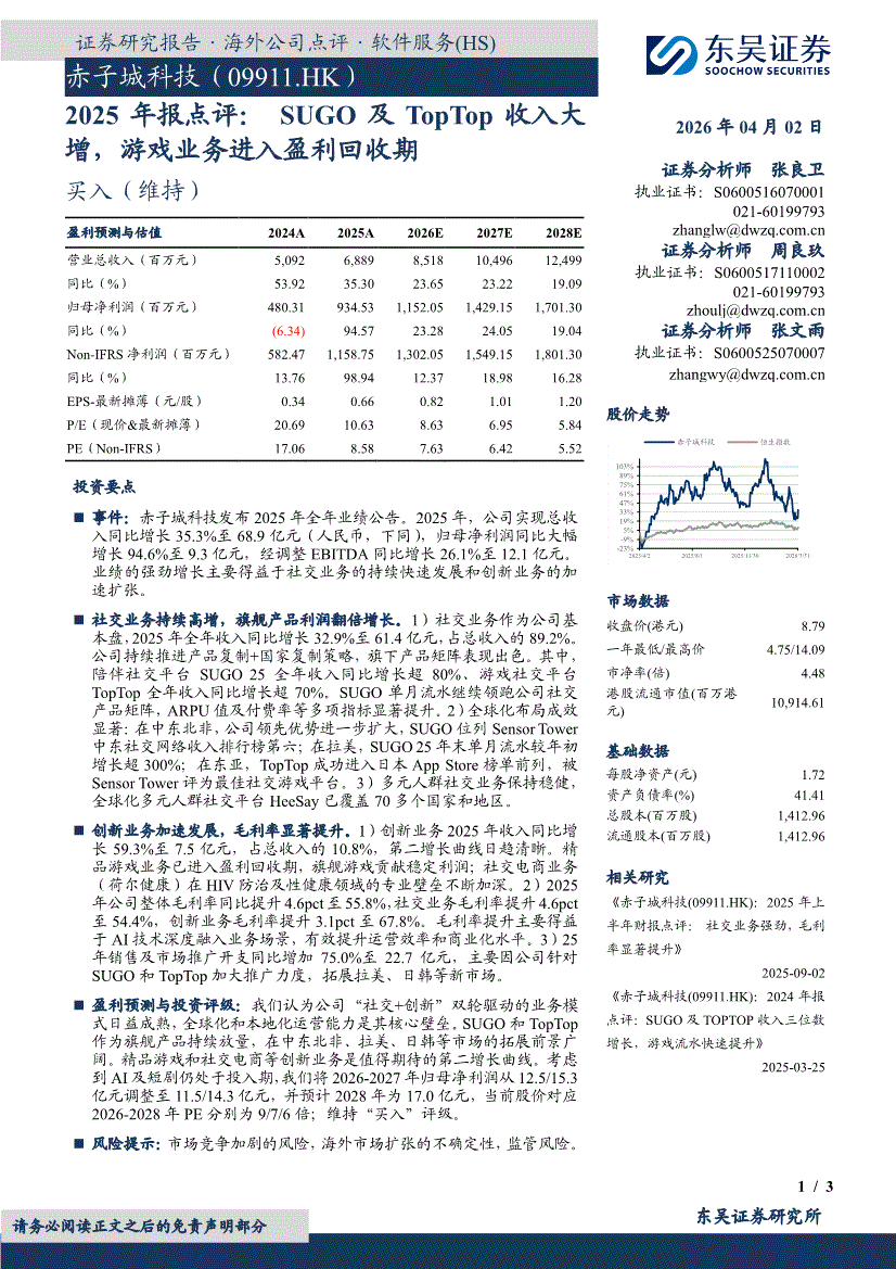 赤子城科技:东吴证券-赤子城科技-9911.HK-2025年报点评: SUGO及TopTop收入大增,游戏业务进入盈利回收期-260402