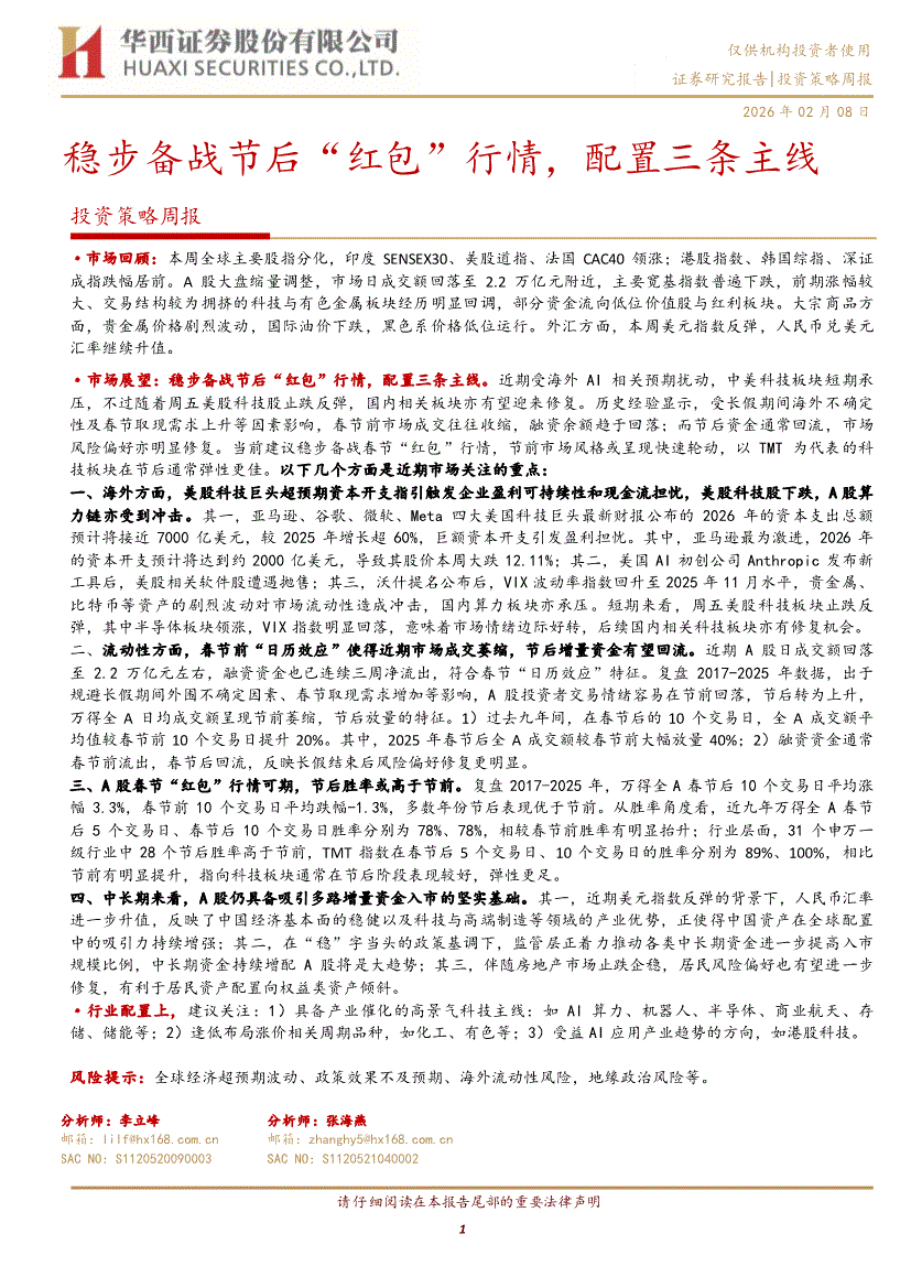 华西证券-投资策略周报:稳步备战节后“红包”行情,配置三条主线-260208