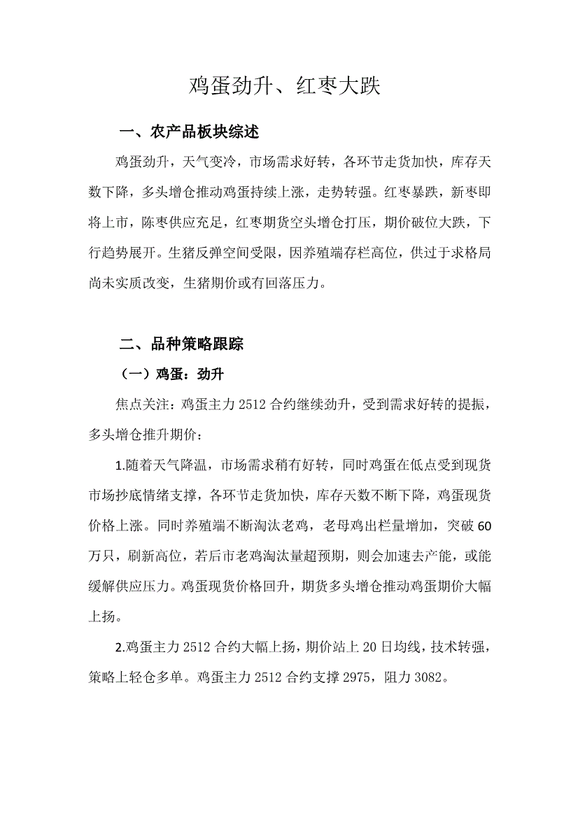 天富期货-鸡蛋劲升、红枣大跌-251024