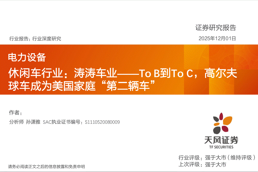 休闲车行业:天风证券-休闲车行业:涛涛车业——To B到To C,高尔夫球车成为美国家庭“第二辆车”-251201