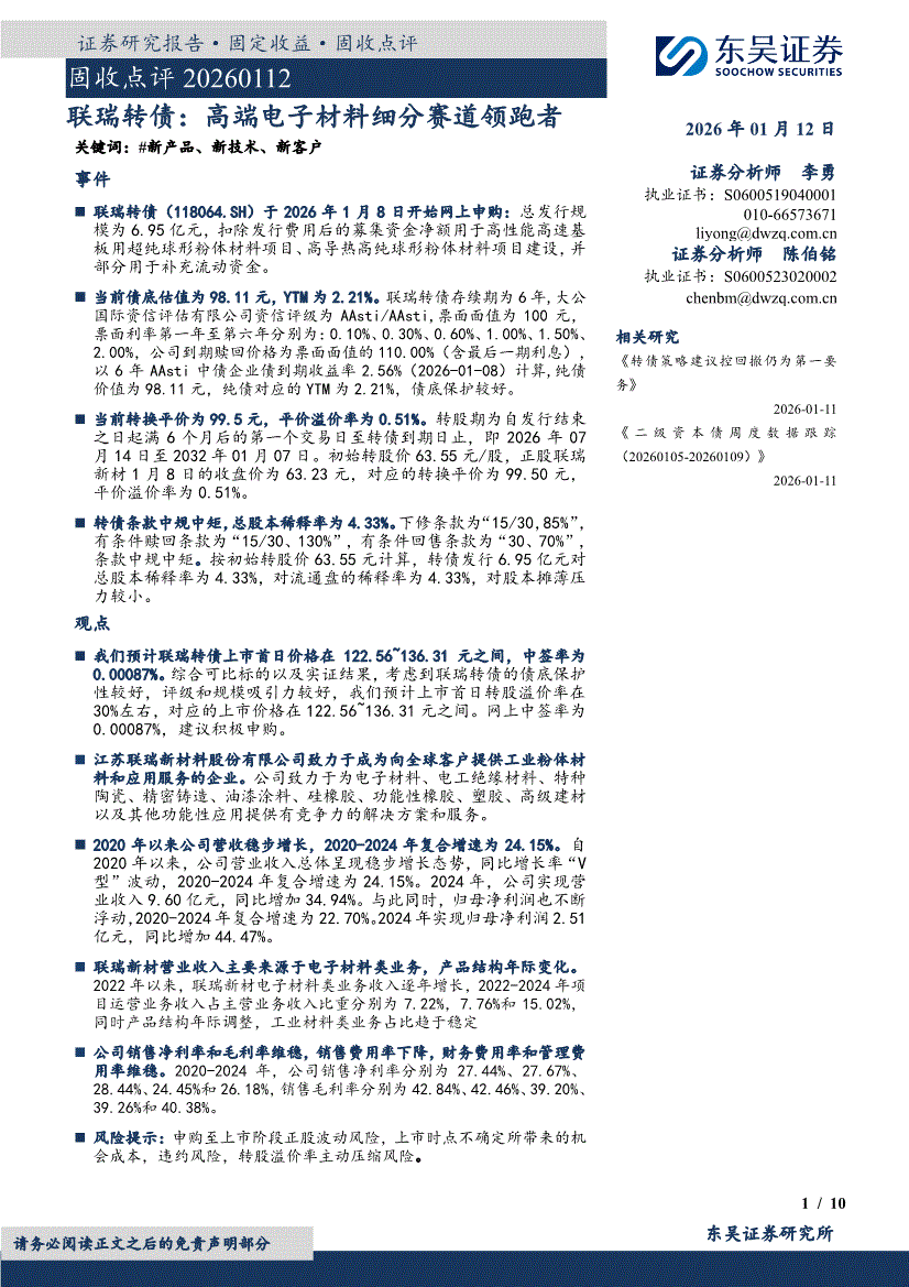 东吴证券-联瑞转债:高端电子材料细分赛道领跑者-260112