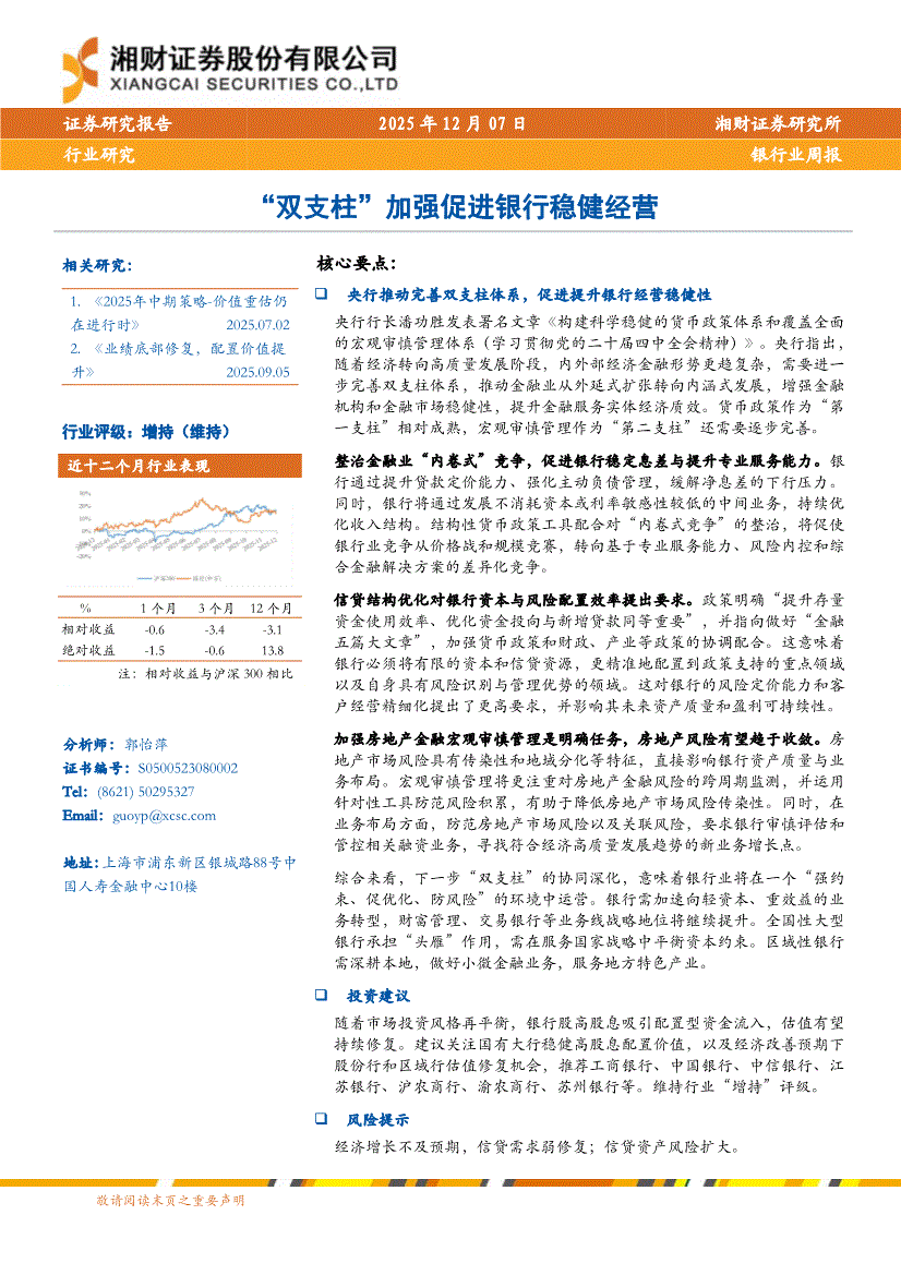 银行业:湘财证券-银行业周报:“双支柱”加强促进银行稳健经营-251207