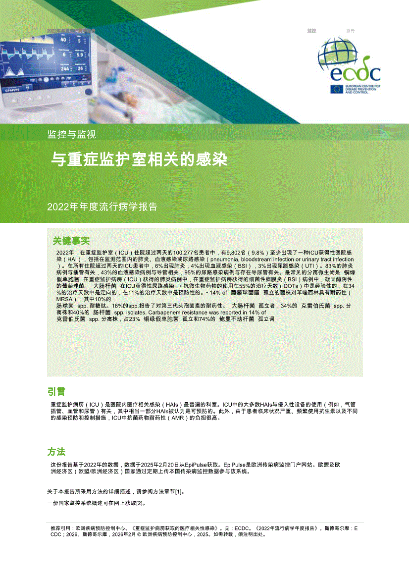欧洲疾病预防控制中心-监控与监视:2022年年度流行病学报告,与重症监护室相关的感染(英译中)-260305