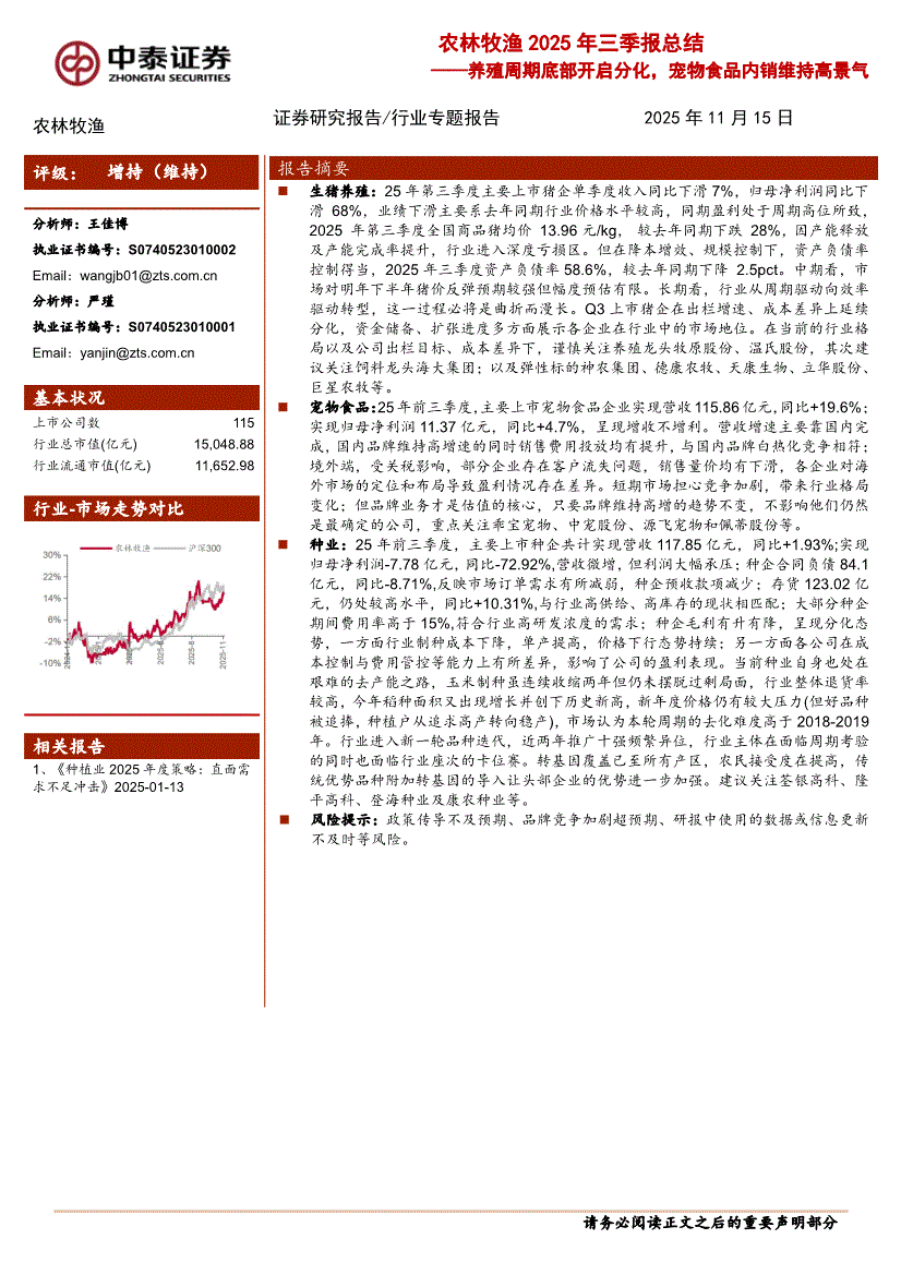 农林牧渔行业:中泰证券-农林牧渔行业2025年三季报总结:养殖周期底部开启分化,宠物食品内销维持高景气-251115