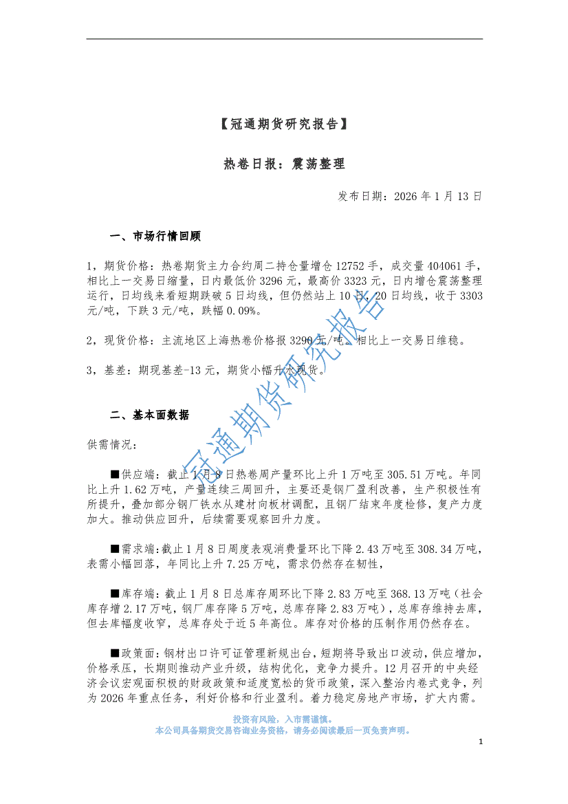 冠通期货-热卷日报:震荡整理-260113