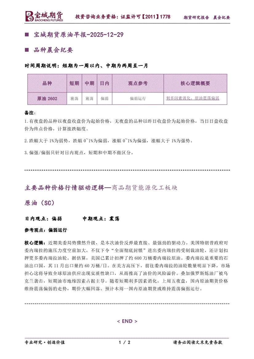 宝城期货-橡胶甲醇原油日报:多空分歧出现能化震荡企稳-251225