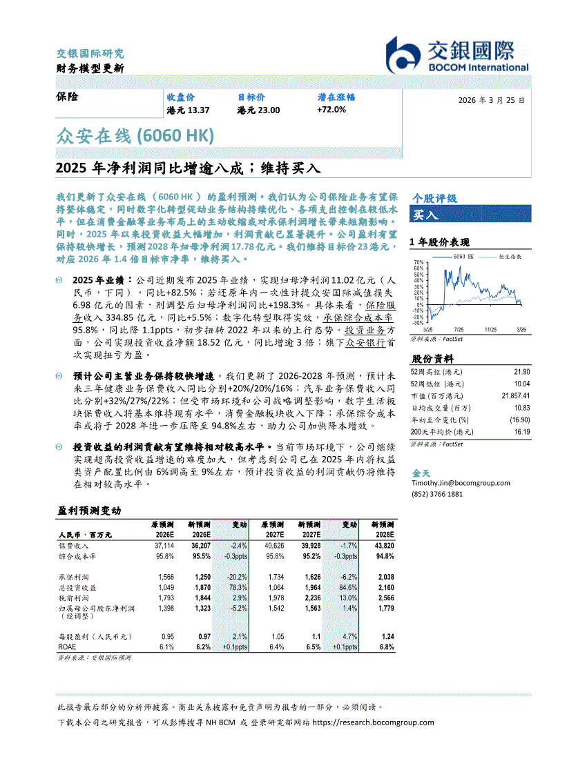 众安在线:交银国际-众安在线-6060.HK-2025年净利润同比增逾八成;维持买入-260325