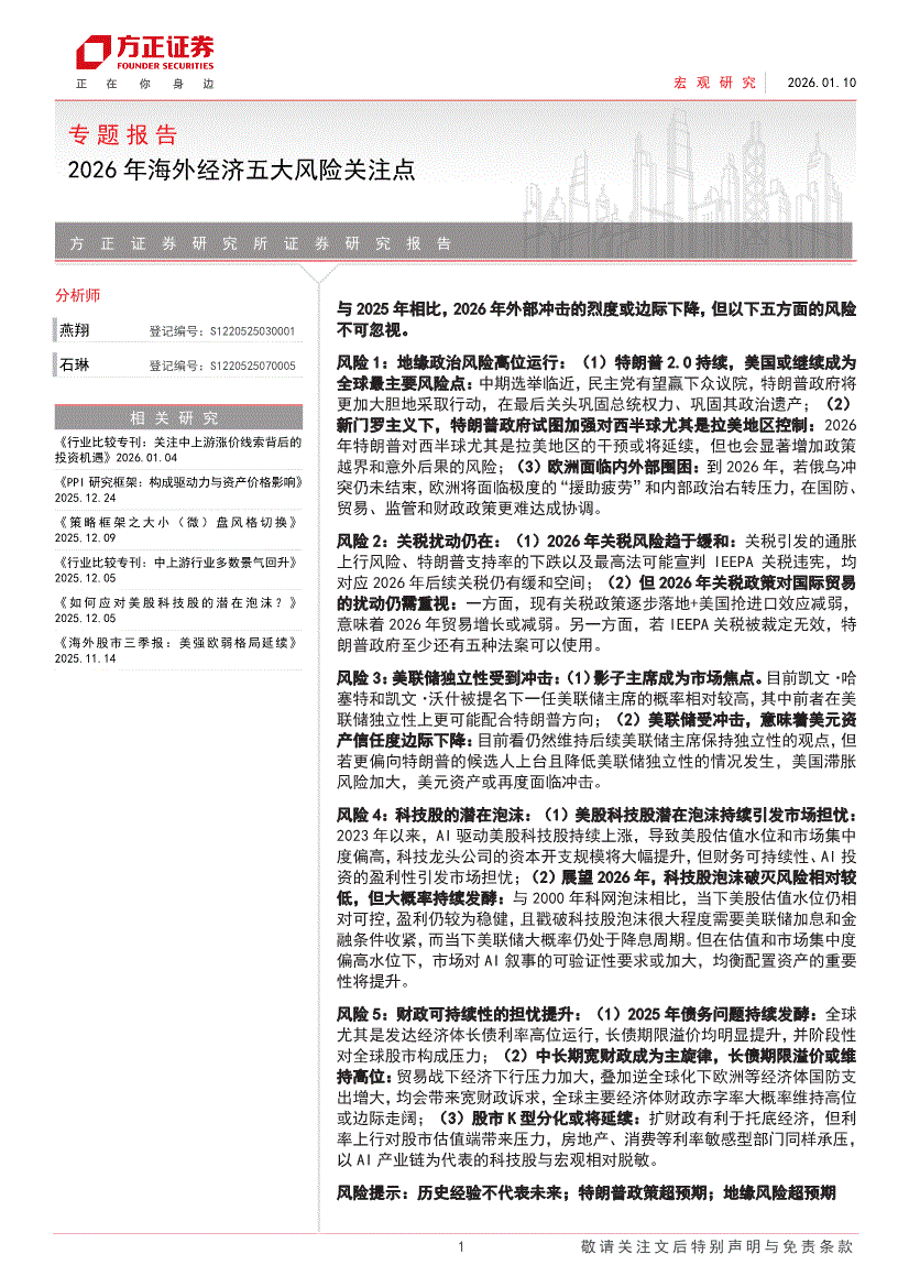 方正证券-专题报告:2026年海外经济五大风险关注点-260110