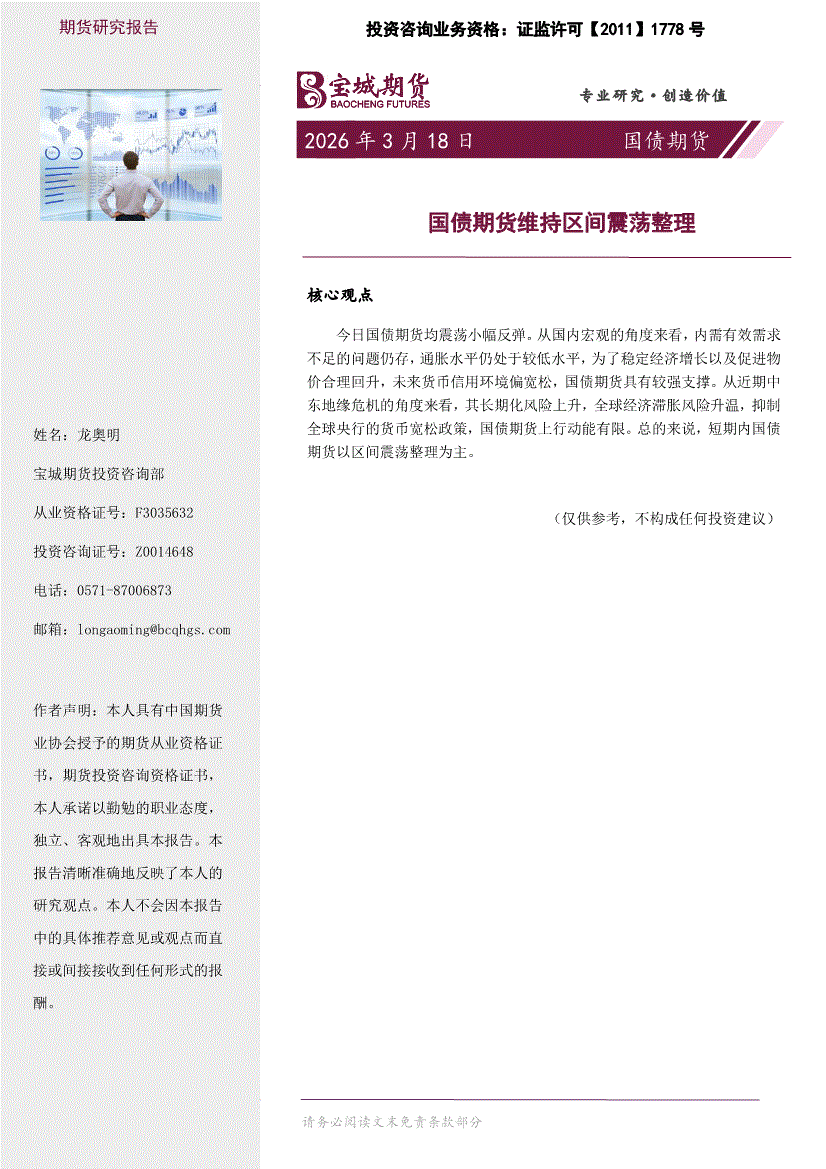 宝城期货-国债期货日报:国债期货维持区间震荡整理-260318