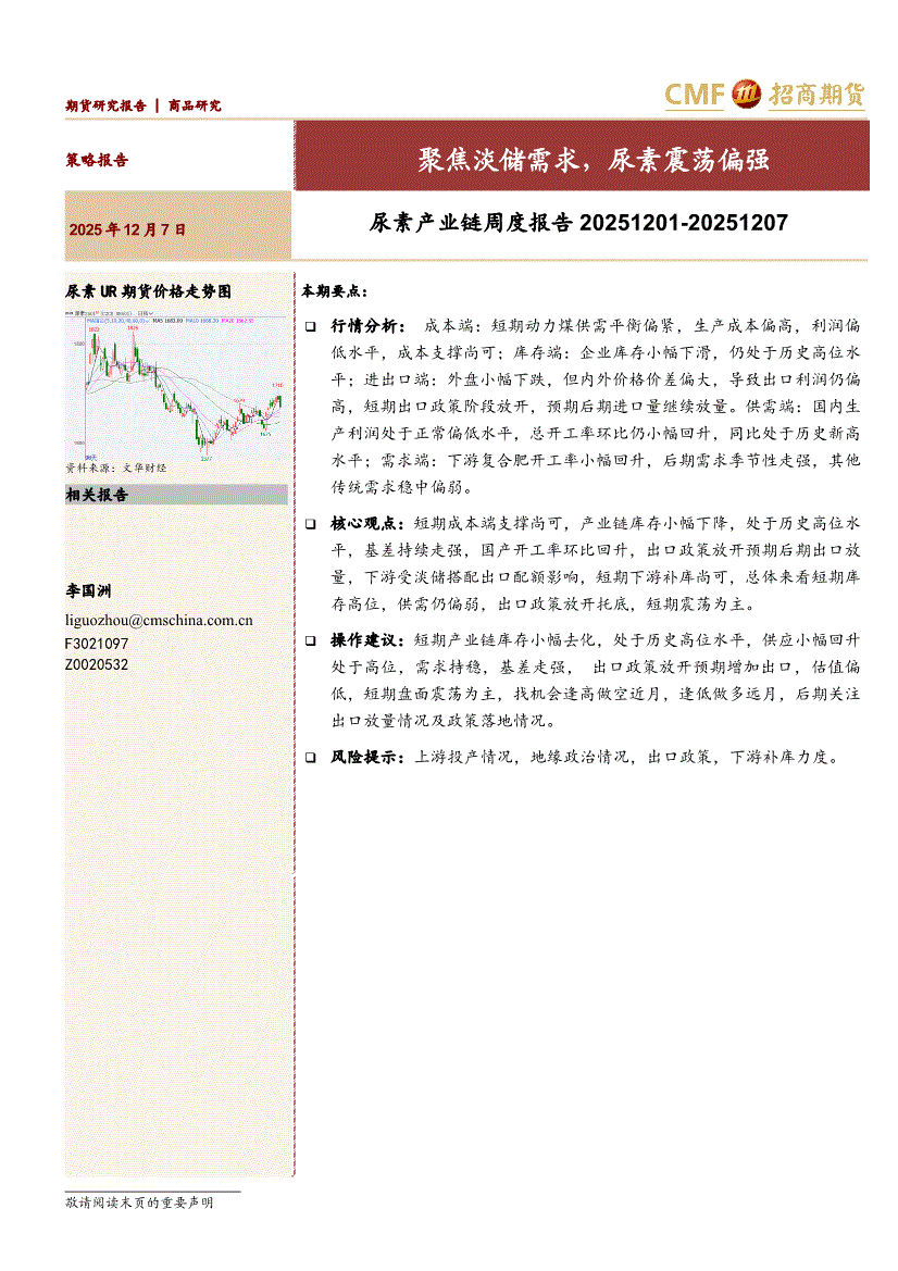 招商期货-尿素产业链周度报告:聚焦淡储需求,尿素震荡偏强-251207