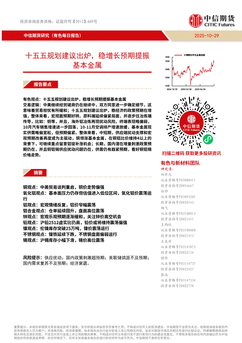 中信期货-有色每日报告:十五五规划建议出炉,稳增长预期提振基本金属-251029