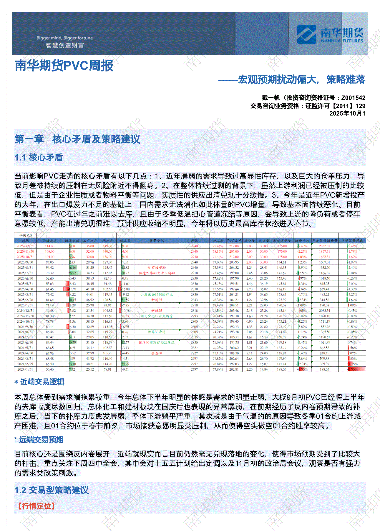 南华期货-PVC周报:宏观预期扰动偏大,策略难落地-251019