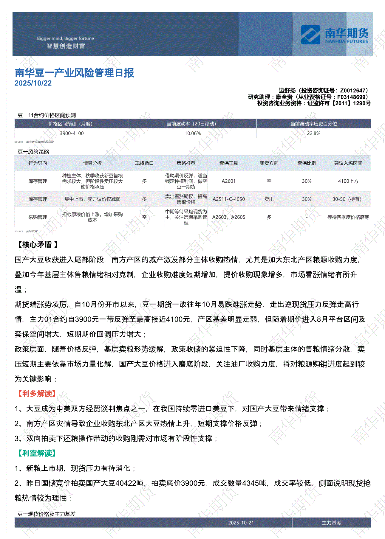 南华期货-豆一产业风险管理日报-251022