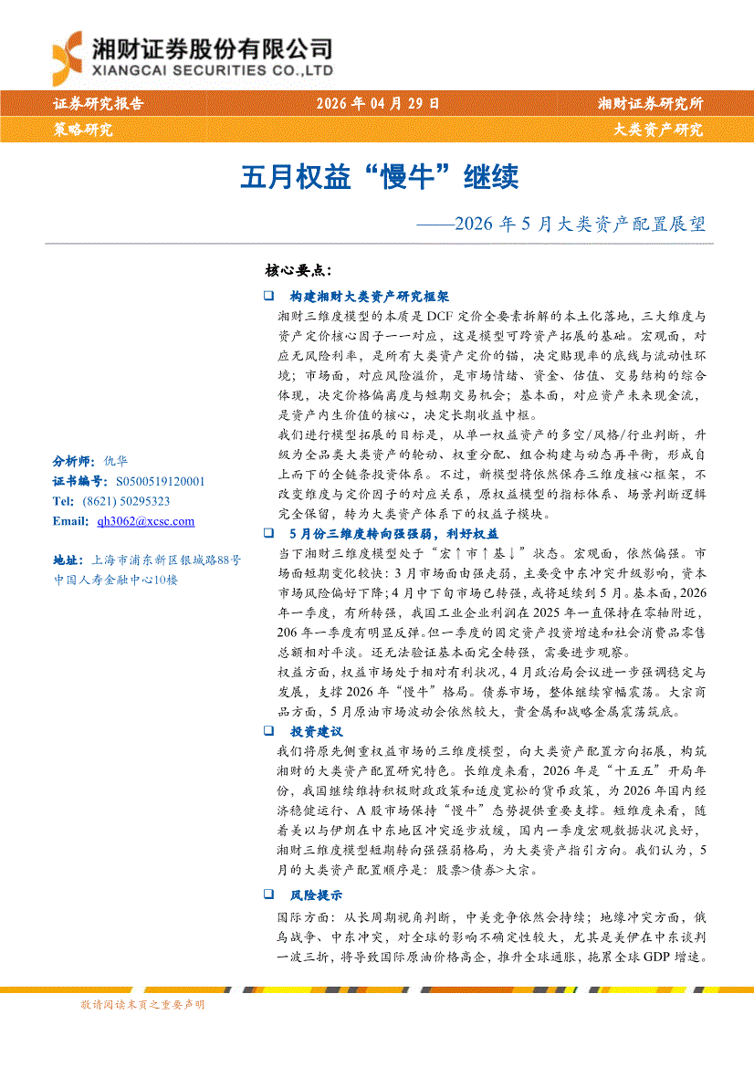 湘财证券-2026年5月大类资产配置展望:五月权益“慢牛”继续-260429