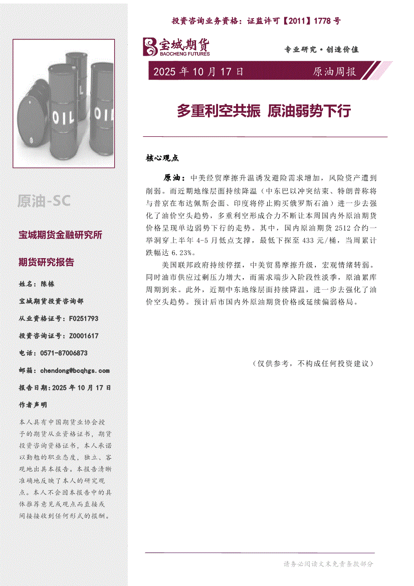 宝城期货-原油周报:多重利空共振,原油弱势下行-251017