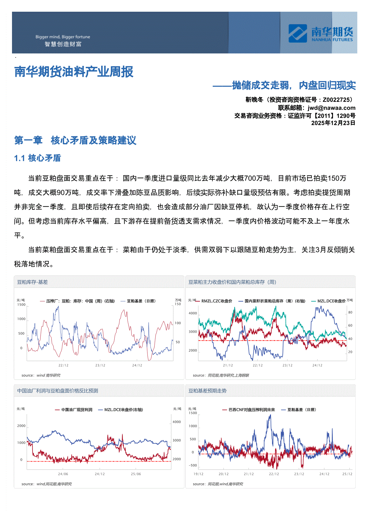 南华期货-油料产业周报:抛储成交走弱,内盘回归现实-251223