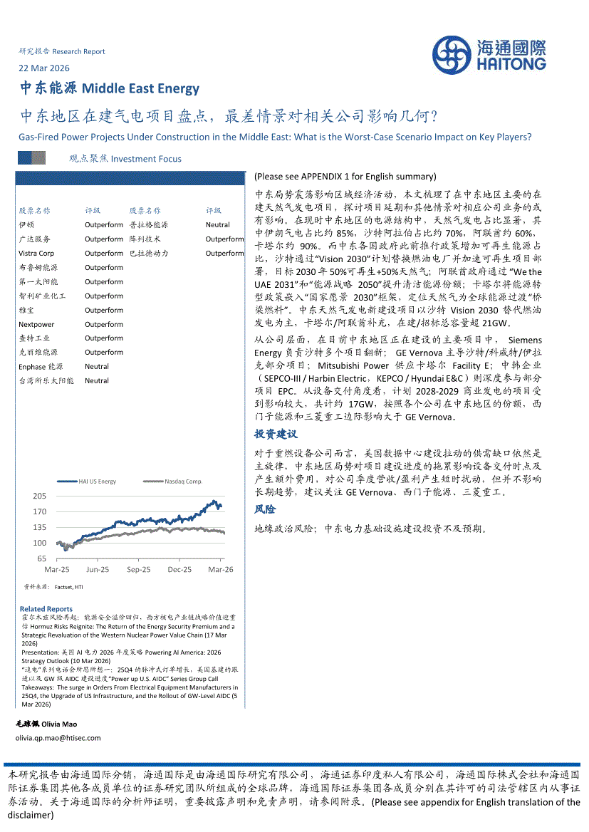 能源行业:海通国际-中东能源行业:中东地区在建气电项目盘点,最差情景对相关公司影响几何?-260322