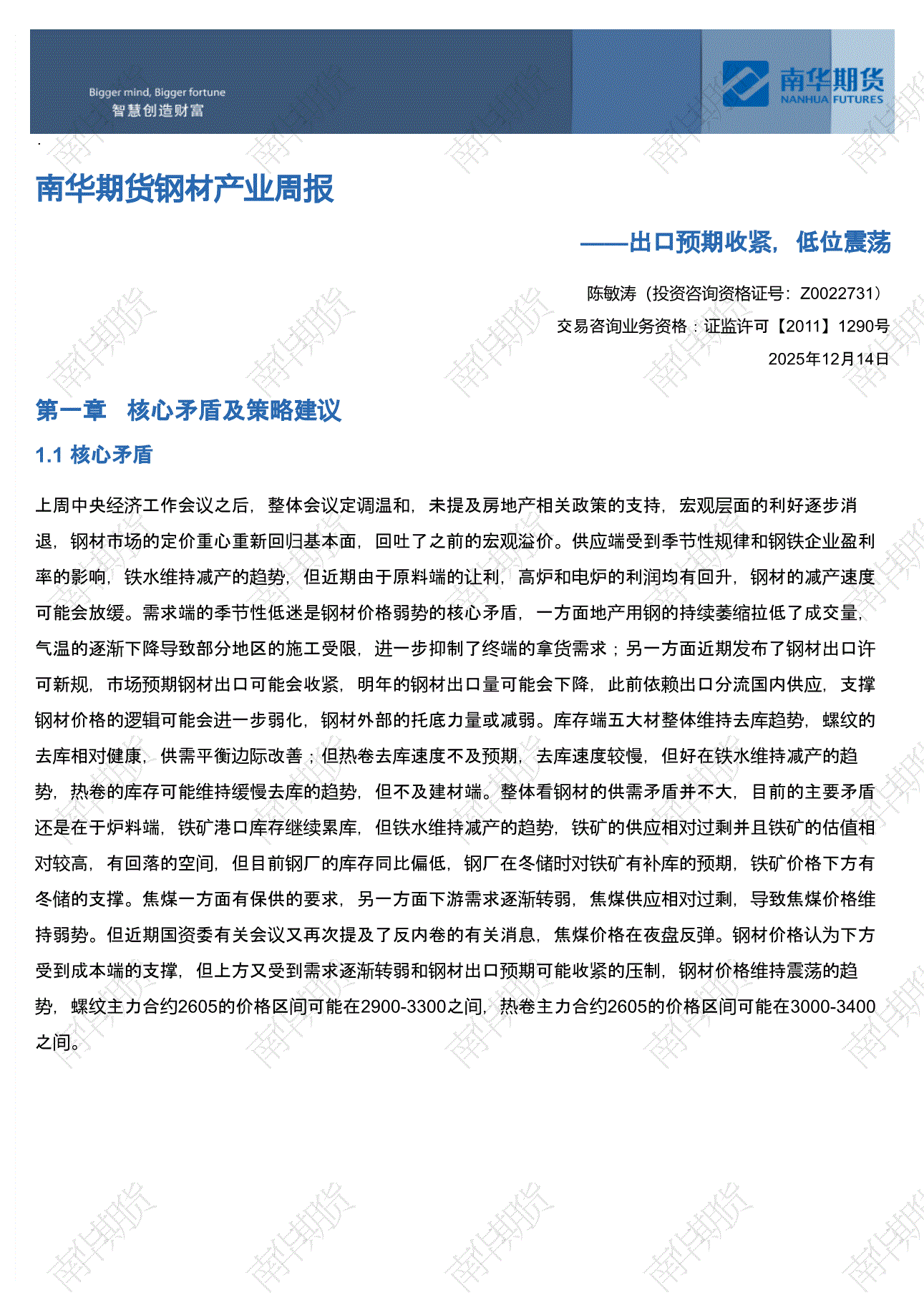 南华期货-钢材产业周报:出口预期收紧,低位震荡-251214