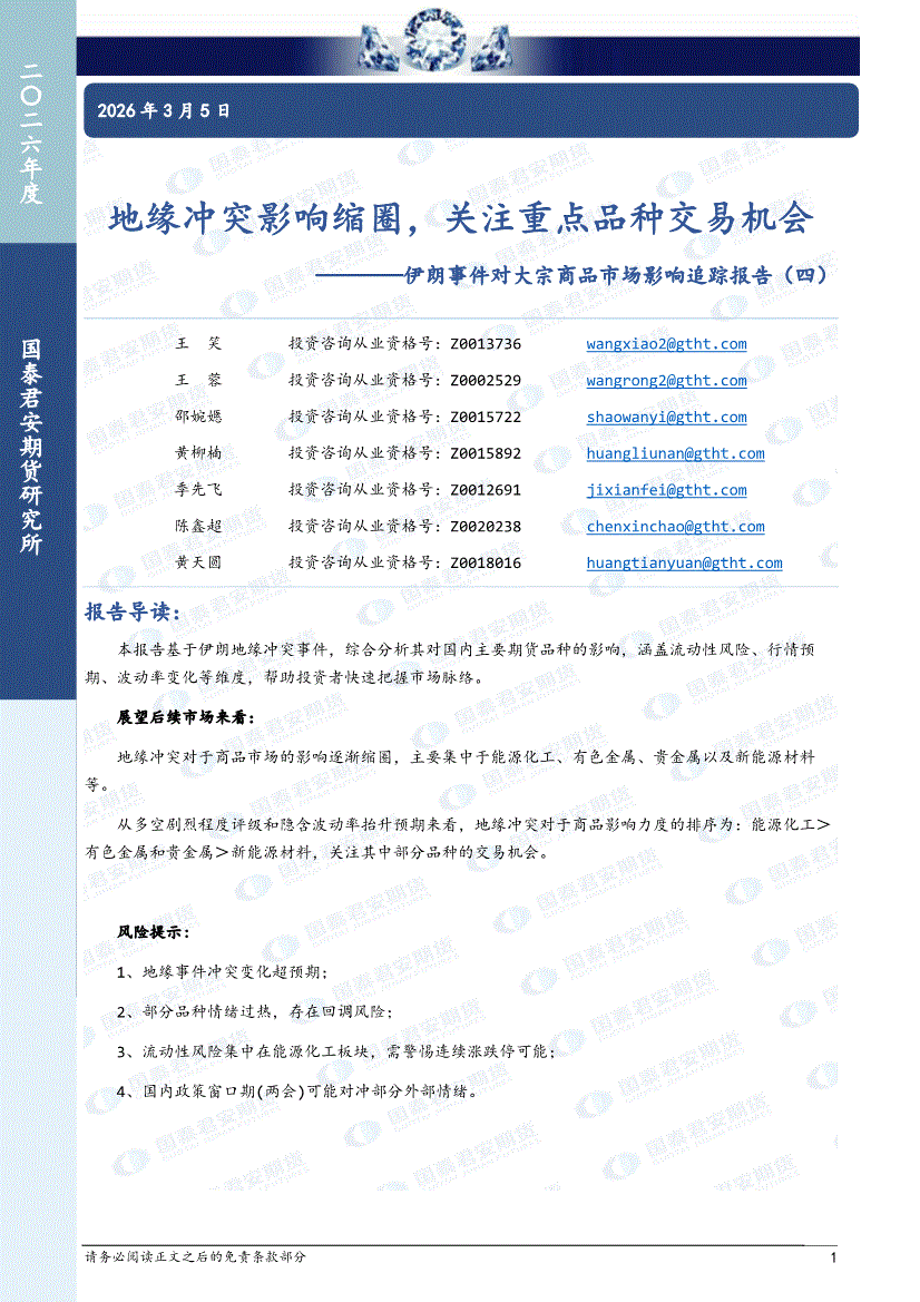 国泰君安期货-伊朗事件对大宗商品市场影响追踪报告(四):地缘冲突影响缩圈,关注重点品种交易机会-260305