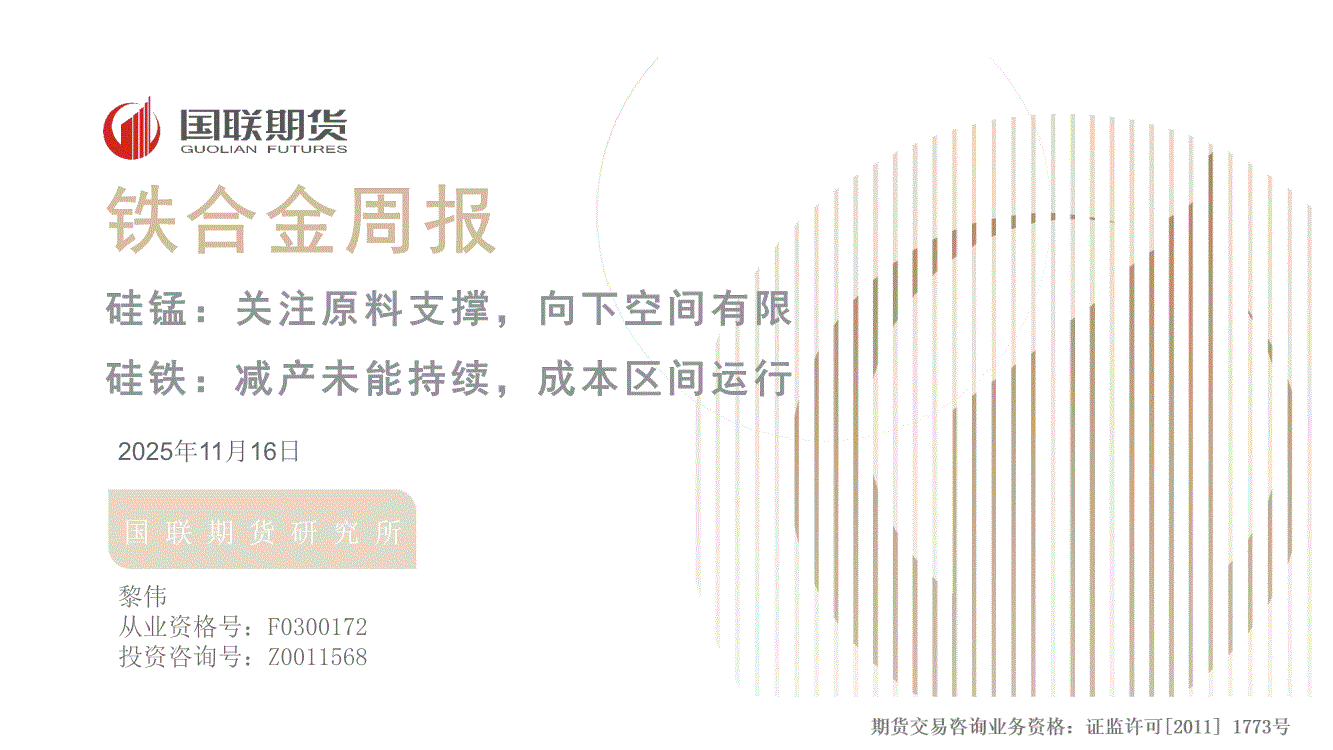 国联期货-铁合金周报:硅锰,关注原料支撑,向下空间有限,硅铁,减产未能持续,成本区间运行-251116