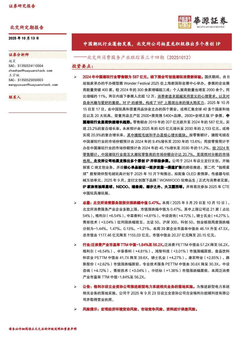 华源证券-北交所消费服务产业跟踪第三十四期:中国潮玩行业蓬勃发展,北交所公司柏星龙积极推出多个原创IP-251013