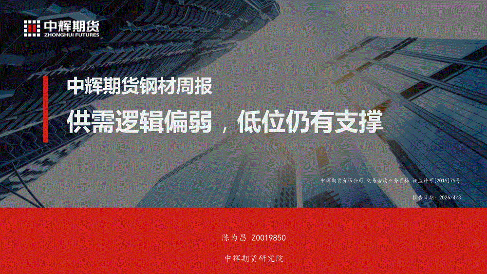 中辉期货-钢材周报:供需逻辑偏弱,低位仍有支撑-260403