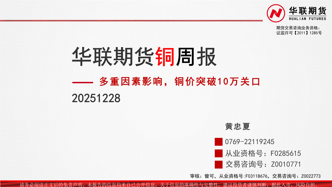华联期货-铜周报:多重因素影响,铜价突破10万关口-251228