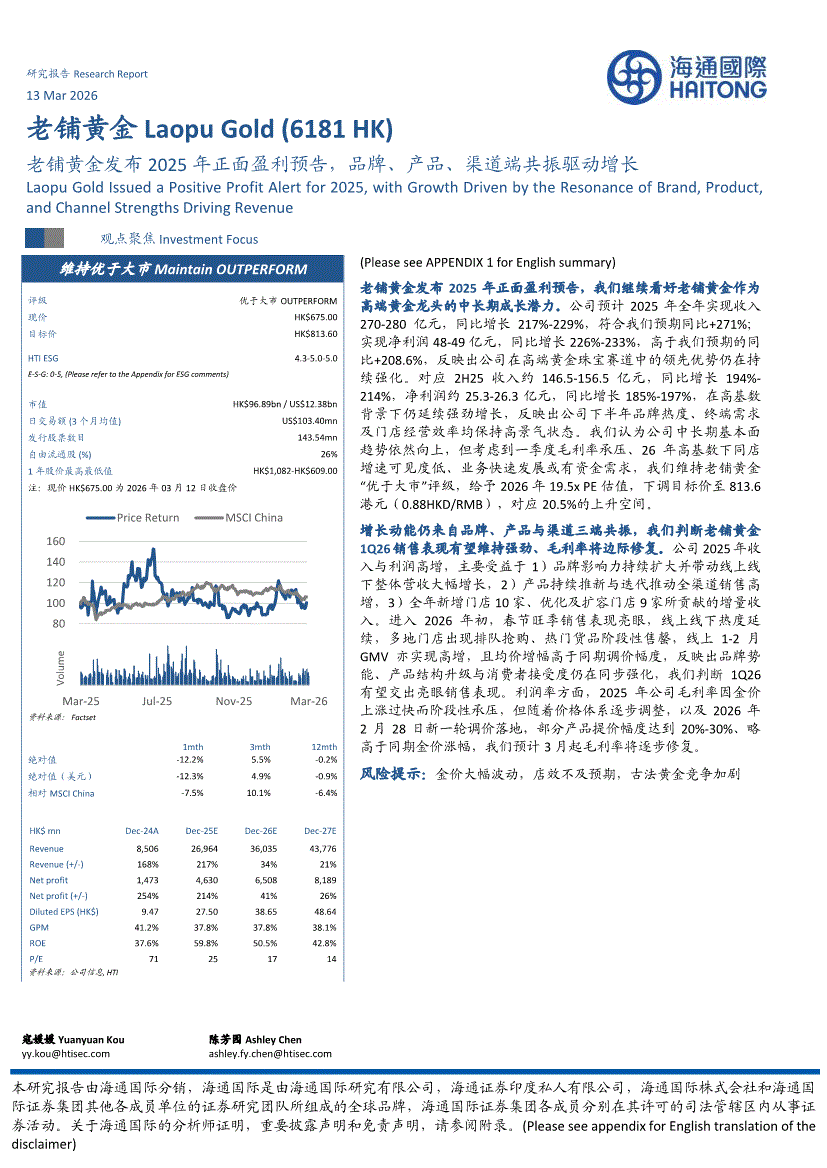 老铺黄金:海通国际-老铺黄金-6181.HK-老铺黄金发布2025年正面盈利预告,品牌、产品、渠道端共振驱动增长-260313