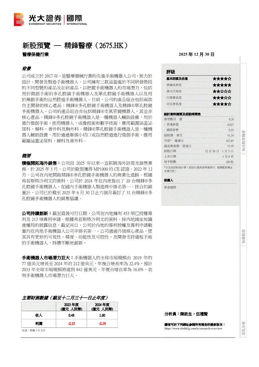 光大证券(国际)-新股预览:精锋医疗(2675.HK)-251230