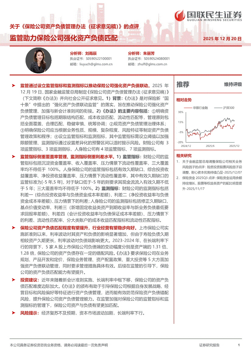非银金融行业:国联民生证券-非银金融行业关于《保险公司资产负债管理办法(征求意见稿)》的点评:监管助力保险公司强化资产负债匹配-251220