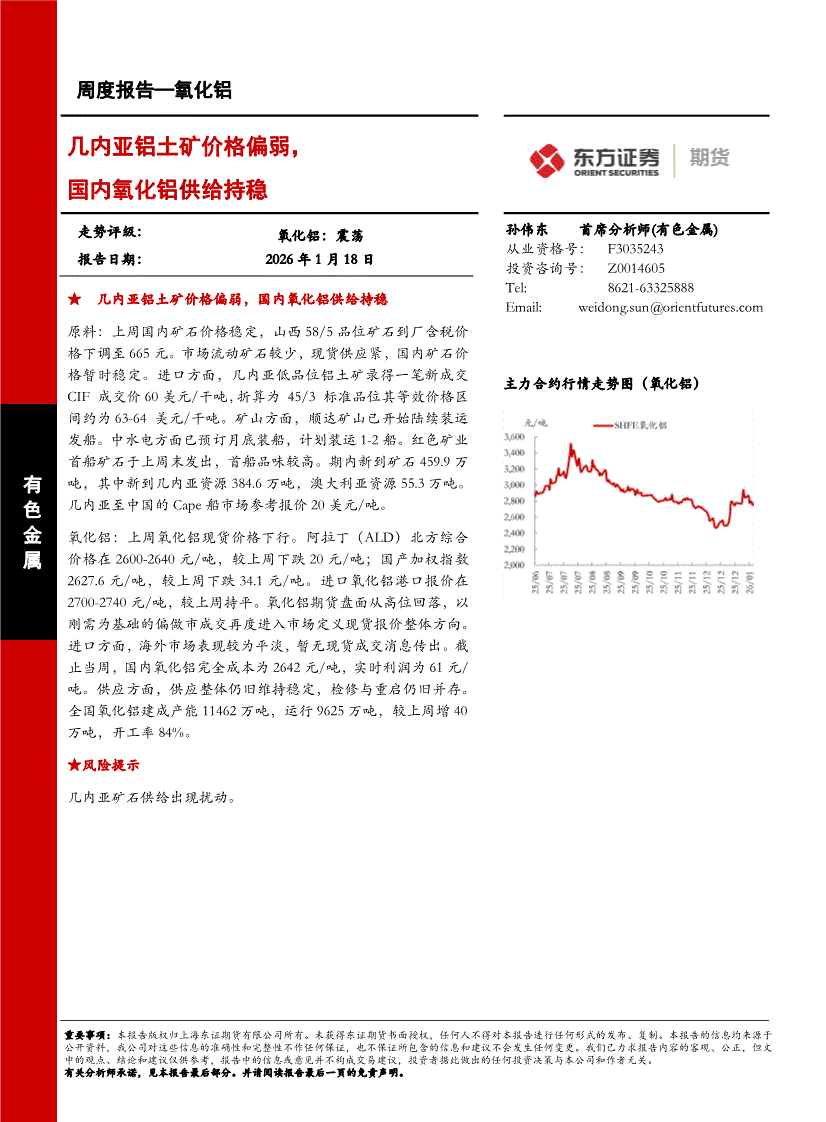 东证期货-周度报告—氧化铝:几内亚铝土矿价格偏弱,国内氧化铝供给持稳-260118