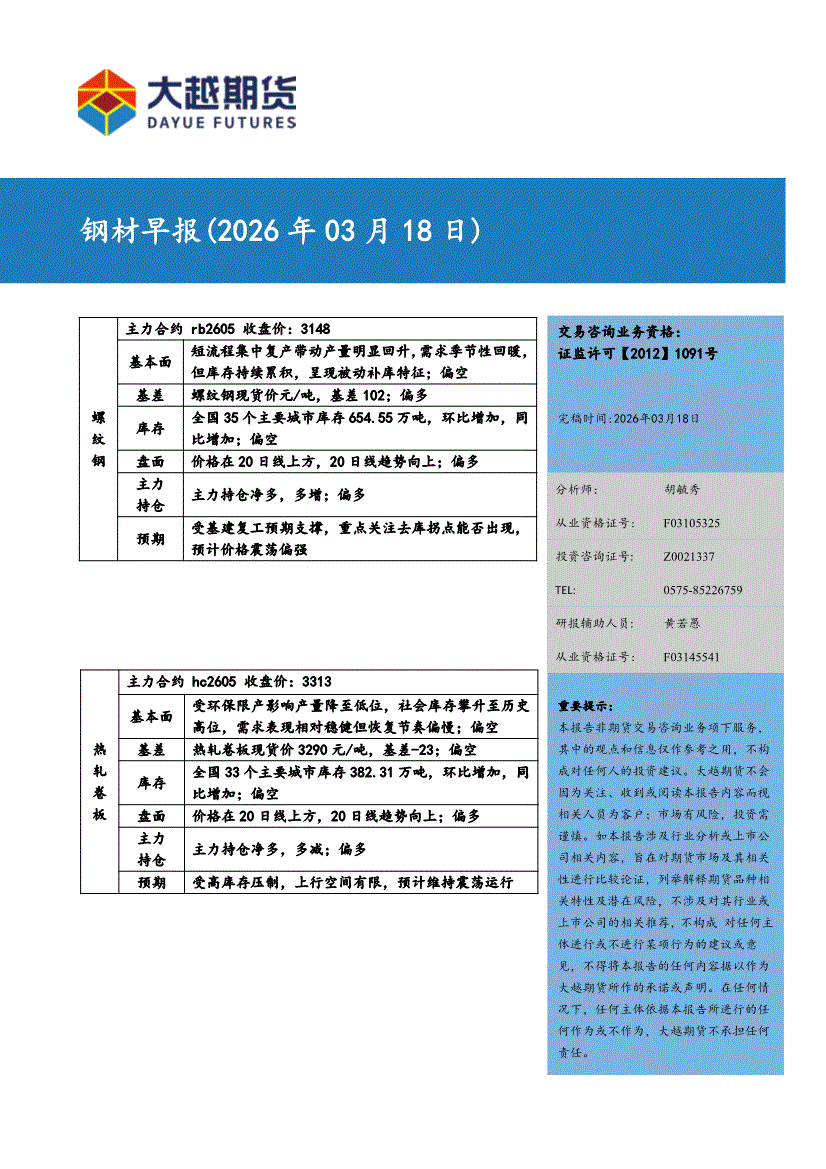 大越期货-钢材早报-260318