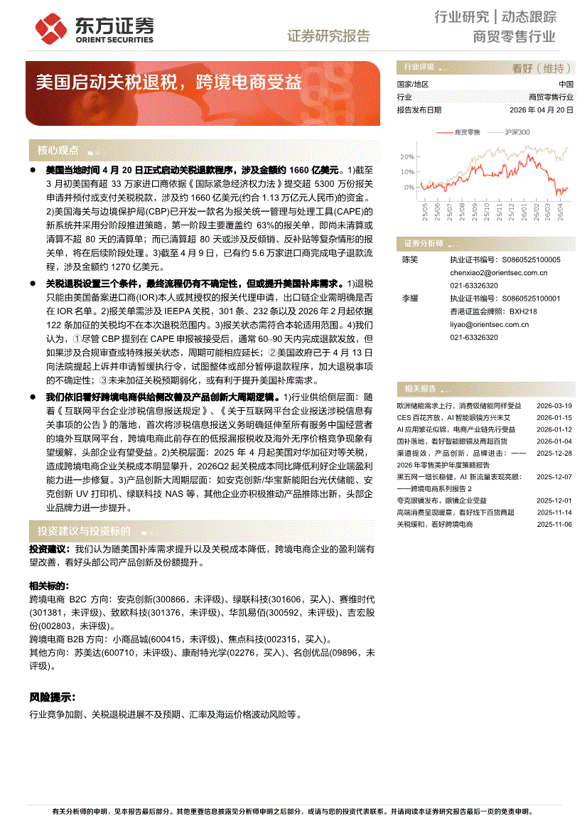 商贸零售行业:东方证券-商贸零售行业动态跟踪:美国启动关税退税,跨境电商受益-260420