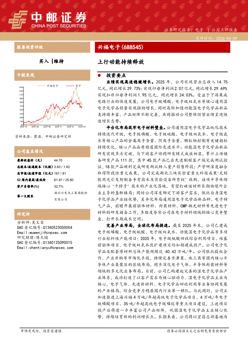 兴福电子:中邮证券-兴福电子-688545-上行动能持续释放-260409