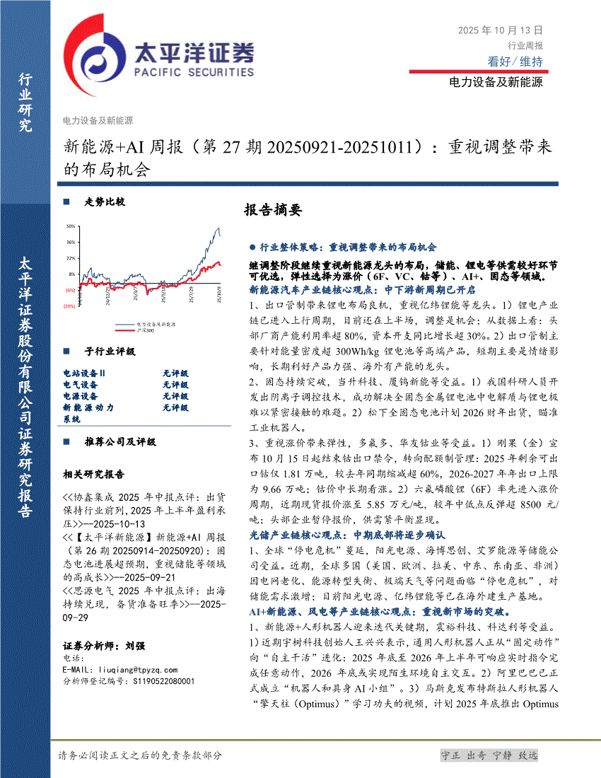 太平洋证券-新能源+AI行业周报(第27期20250921~20251011):重视调整带来的布局机会-251013