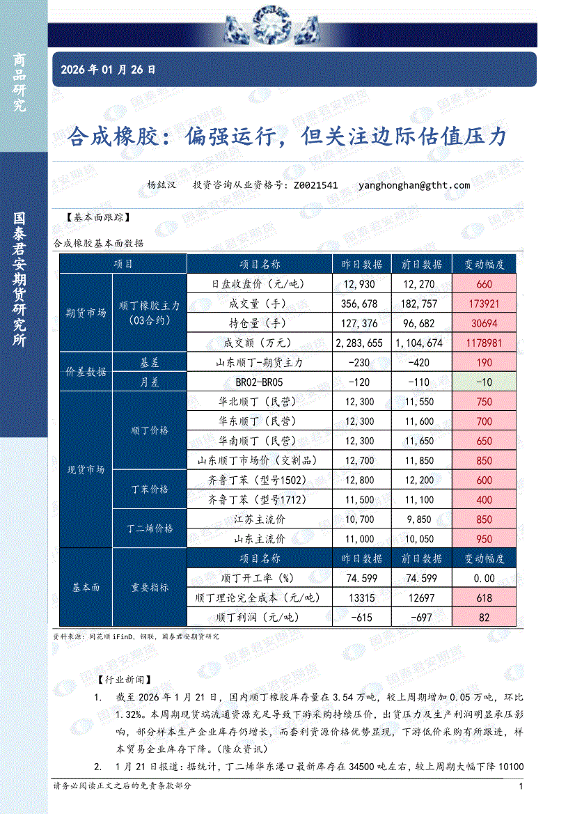 国泰君安期货-合成橡胶:偏强运行,但关注边际估值压力-260126