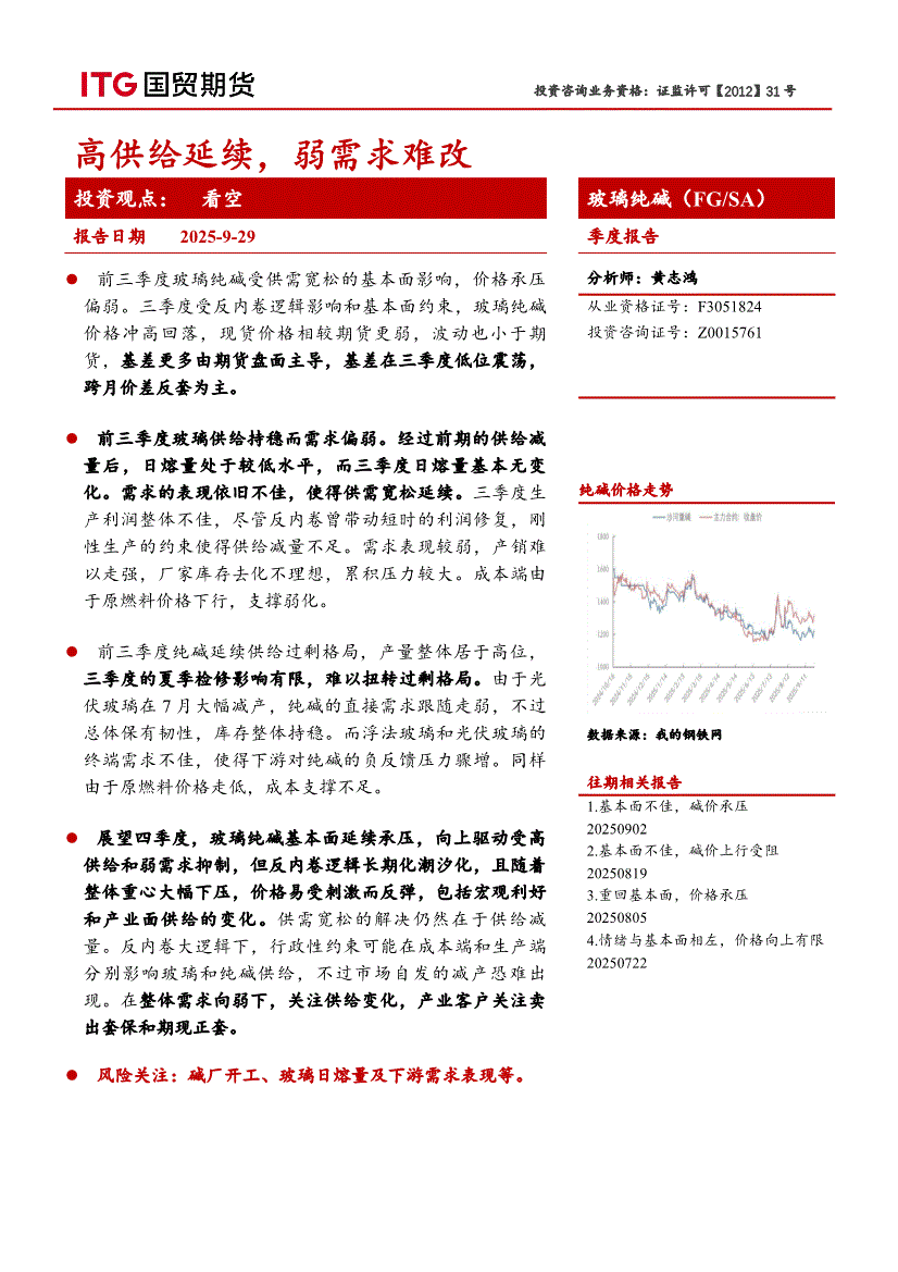 国贸期货-玻璃纯碱(FG&SA):基本面平稳,碱玻震荡为主-251013