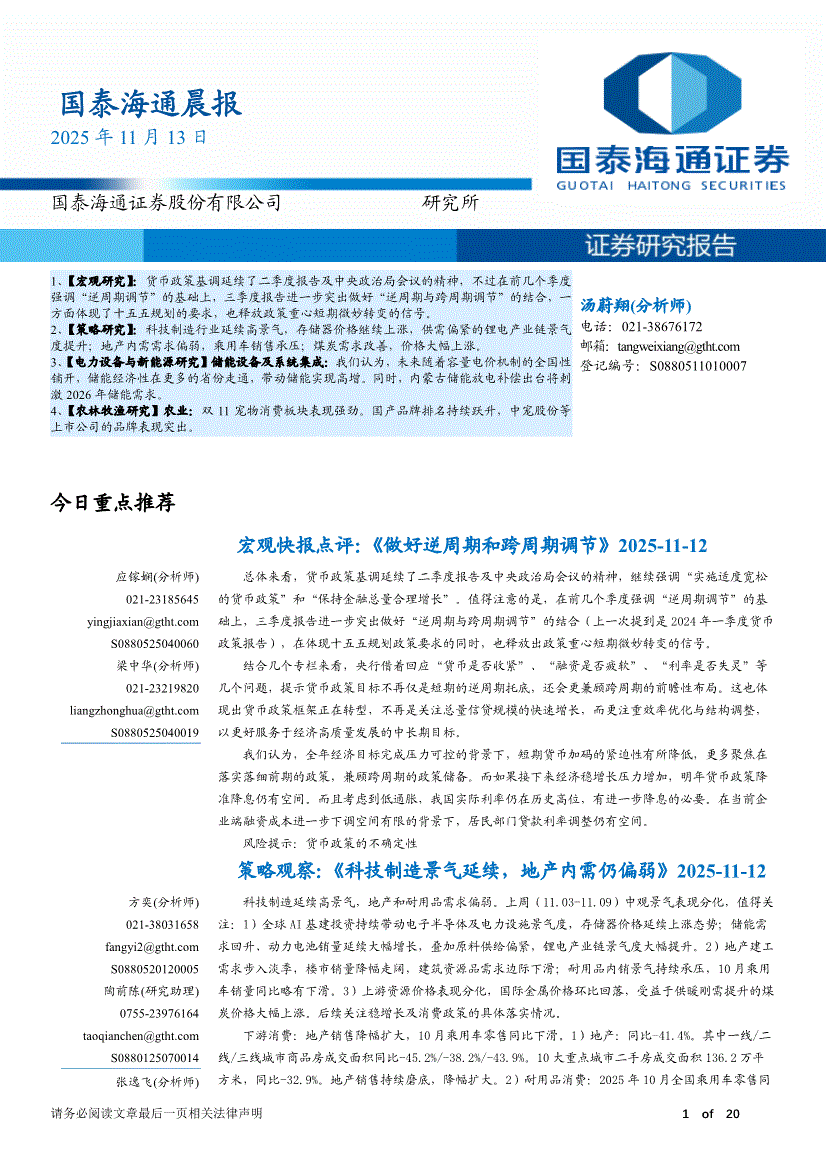 国泰海通证券-主题风向标11月第1期:聚焦内需新机遇与科技主题轮动-251116