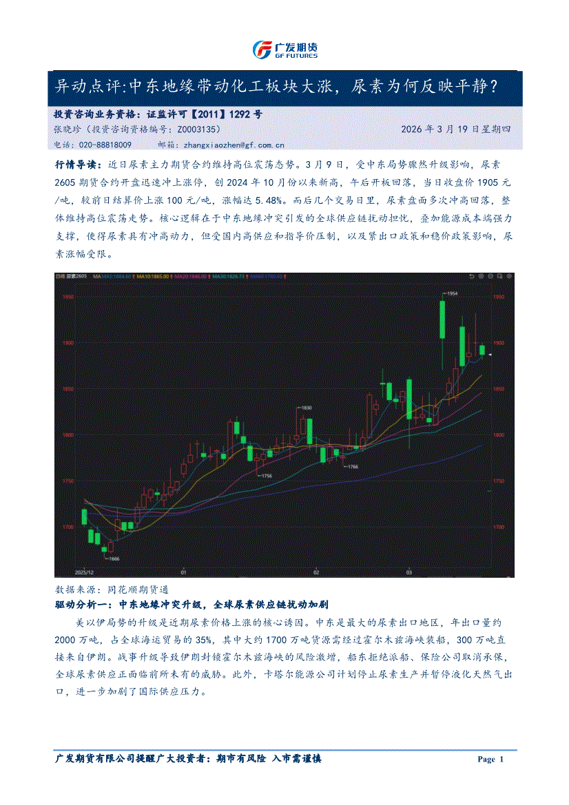 广发期货-异动点评:中东地缘带动化工板块大涨,尿素为何反映平静?-260319