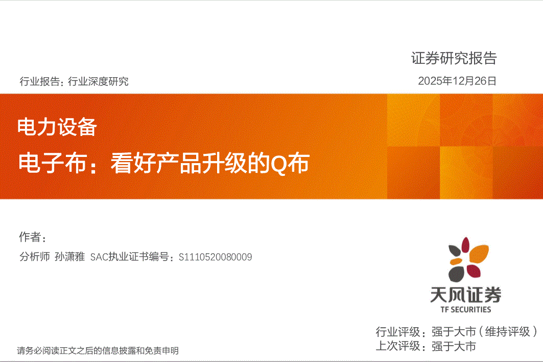 电力设备行业:天风证券-电力设备行业:电子布,看好产品升级的Q布-251226