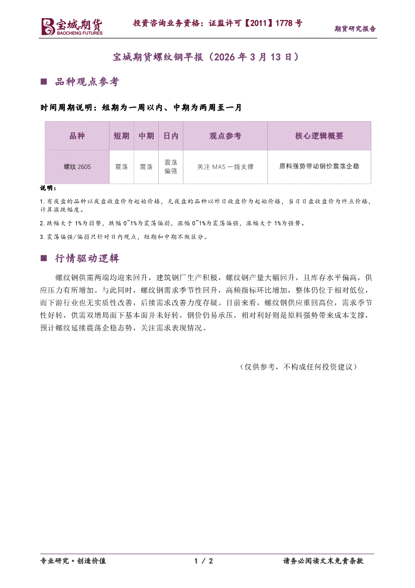 宝城期货-螺纹钢早报-260313