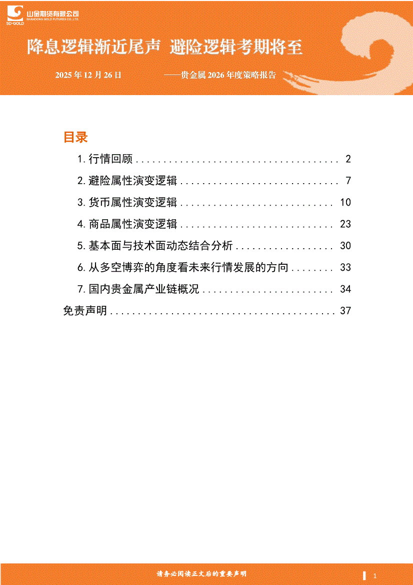 山金期货-贵金属2026年度策略报告:降息逻辑渐近尾声,避险逻辑考期将至-251226